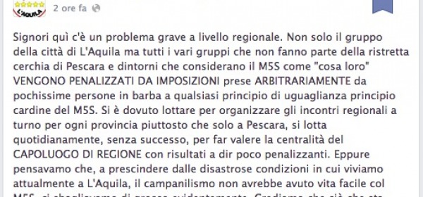 L'Aquila - Ormai è guerra aperta tra il gruppo aquilano e quello pescarese del Movimento 5 Stelle, la lotta...