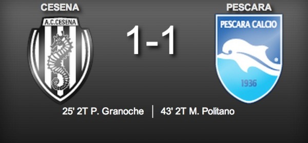 Pescara - Il Cesena non riesce ad agganciare il Lanciano in testa a quota 15, arrivava da due vittorie...