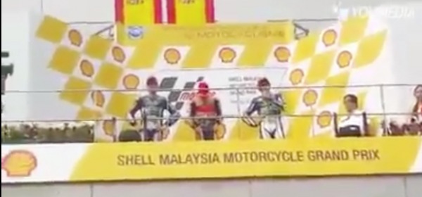 Lorenzo sul podio a Sepang non ha gradito la premizione di Rossi, giunto terzo al traguardo, e...