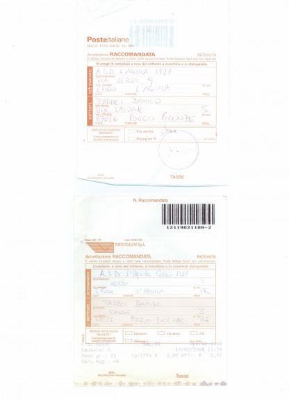 SI ALLEGANO I BOLLETTINI DELLE DUE RACCOMANDATE INVIATE IN DATA 09.01.2008 E 19.02.2008 DALLE QUALI E’ POSSIBILE VERIFICARE LE DATE DI INVIO
