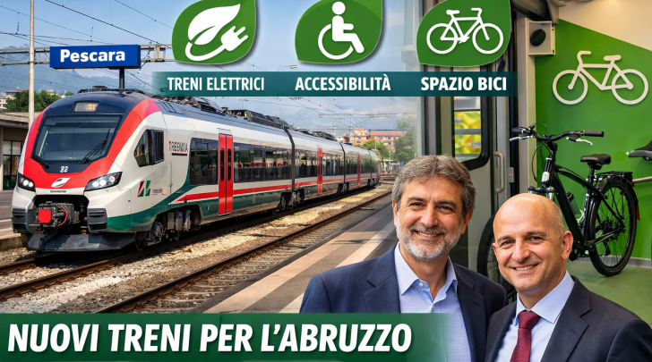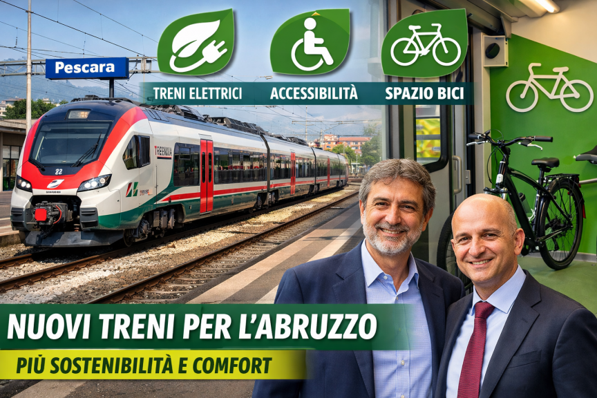 Due nuovi treni elettrici monopiano entrano ufficialmente in servizio sulle linee abruzzesi, rafforzando il percorso di ammodernamento avviato da Trenitalia in collaborazione con la Regione Abruzzo. La presentazione si è svolta alla stazione di Pescara alla presenza dell’amministratore delegato e direttore generale di Trenitalia, Gianpiero Strisciuglio, e delle istituzioni locali.