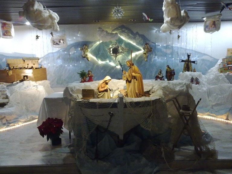 La natività è stata collocata sulla barca. Un baule d’orzo, un secchio con il vestitino di ricambio per il Bambin Gesù indiscusso sovrano dell’universo rappresentato dal piatto contenente il sole e ipianeti che gli ruotano intorno. La barca, la rete, l’ancora sono simboli di aiuto per l’uomo di oggi che come per il passato si ostina a vivere egoisticamente una vita del tutto esteriore pensando al solo benessere materiale trascurando del tutto o quasi l’aspetto spirituale.