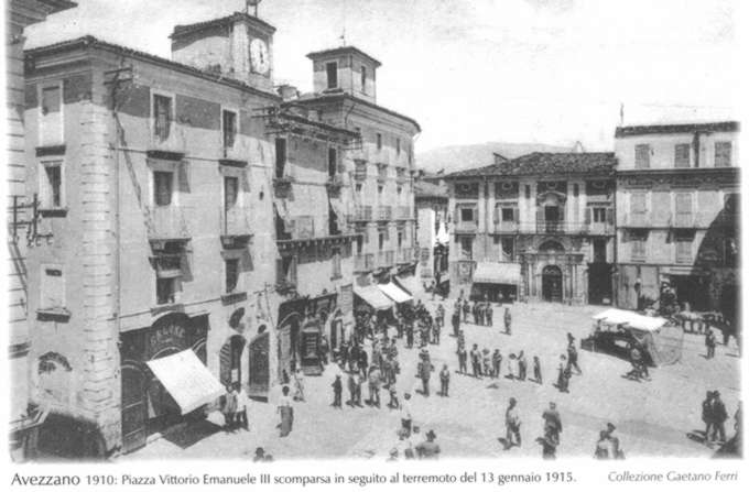 L'intero paese venne ricostruito in periferia e, così come avviene sempre nei territori colpiti da gravi calamità, tutto si decentra con la scusa della temporaneità ma poi i mutamenti restano definitivi. Le bellissime piazze quali Piazza Umberto I, Piazza Vittorio Emanuele III e Largo San Bartolomeo, esistenti nel pre-terremoto, non sono state più ricostruite. Solo Piazza Castello (Orsini) e la chiesa di San Giovanni, sono rimaste dove erano e rappresentano forse l'unica costante nei luoghi di ritrovo e di aggregazione precedente e post terremoto. Segue il video il plastico di Avezzano prima del sisma del 1915.