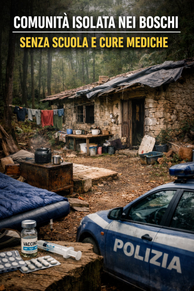 L’intervento è stato eseguito dalla polizia giudiziaria su disposizione della Procura per i minorenni, che ha disposto un’operazione mirata dopo alcune segnalazioni. Secondo quanto emerso, i minori dormivano su un materassino gonfiabile in un ambiente umido e in stato di abbandono, senza aver mai frequentato la scuola né ricevuto le vaccinazioni previste.