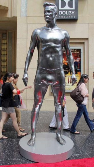 Il calciatore suddito di Sua Maestà diviene sempre più simbolo di mascolinità anglosassone e tanto lo dimostra la statua d'acciao che lo vede in mutande di fronte al mega store del noto marchio.