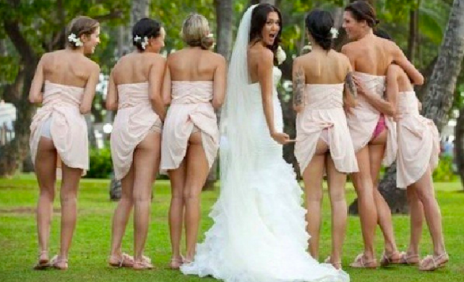 I "Bridesmaids mooning" non sono altro che gli scatti fatti alla sposa ed alle damigelle di schiena e con la gonna alzata a far vedere il lato b, meglio se senza slip.