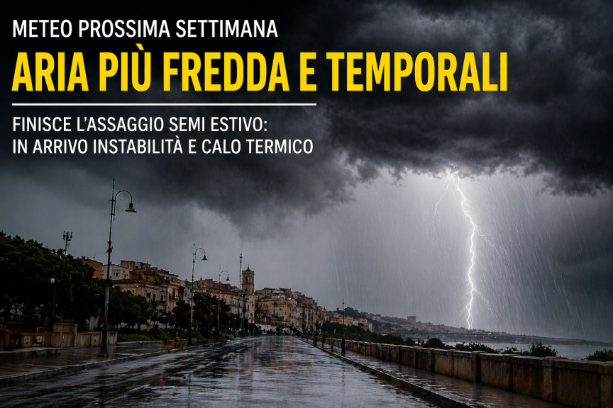 Dopo il clima quasi estivo del weekend, correnti più fredde in discesa dal Nord Europa riportano instabilità diffusa, piogge e un sensibile calo delle temperature