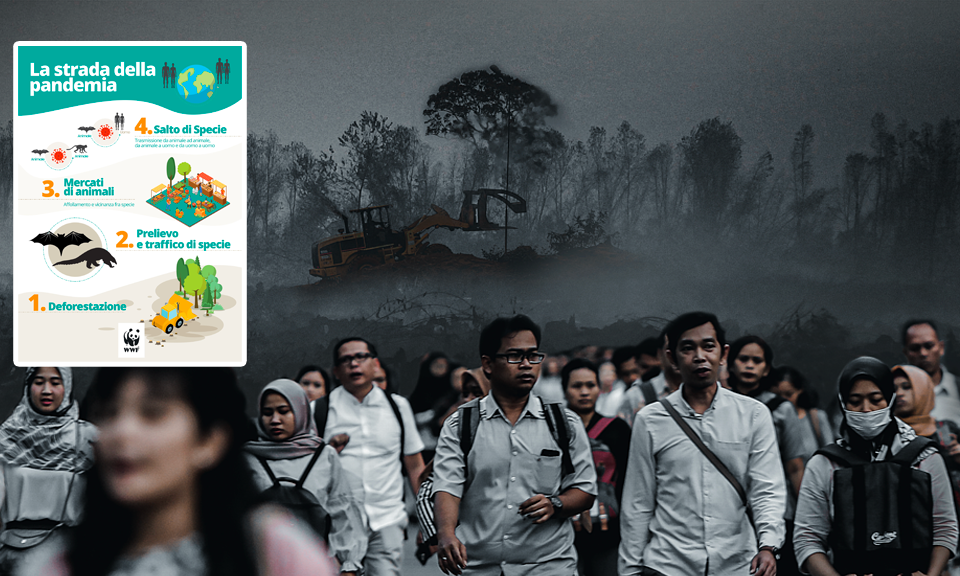 Dagli animali all'uomo Alla base dell'origine del nuovo coronavirus c'è il fenomeno dello "spillover", titolo di un libro di successo del giornalista scientifico Usa David Quammen (2012) che racconta proprio come alla base di epidemie come l'ebola ci sia la distruzione degli ecosistemi, in particolare quelli forestali, i più complessi e ricchi di biodiversità. Spillover significa "salto interspecifico", il momento in cui un patogeno passa da una specie ospite a un'altra, in questo caso da animale a uomo. Fra i più probabili serbatoi del virus SARS-CoV-2 ci sono alcune specie di chirotteri (pipistrelli), ma rimane aperta anche l'ipotesi che a facilitarne la diffusione come 'ospiti intermedi' siano stati i pangolini. Questi piccoli mammiferi insettivori, le cui 8 specie esistenti sono tutte a rischio estinzione secondo la Iucn, l'Unione Internazionale per la Conservazione della Natura, sono gli animali più contrabbandati al mondo per via delle infondate credenze sui poteri curativi delle loro scaglie, ma anche per la loro carne. Ad oggi non sappiamo ancora quale sia stata l'origine del SARS-CoV2, ma è molto probabile che dietro la sua diffusione si nasconda il commercio legale e illegale di animali selvatici vivi o di loro parti. Il commercio di animali selvatici è infatti un comprovato veicolo di vecchie e nuove zoonosi, che ogni anno causano circa un miliardo di casi di malattia e milioni di morti. Il 75% delle malattie umane fino ad oggi conosciute, infatti, deriva da animali, così come il 60% delle malattie emergenti viene trasmesso da animali selvatici. Gli ecosistemi naturali hanno un ruolo cruciale nel sostenere e alimentare la vita, compresa quella della nostra specie, ma svolgono anche un ruolo fondamentale nel regolare la trasmissione e la diffusione di malattie infettive come le zoonosi. La distruzione di habitat e di biodiversità provocata dall'uomo rompe gli equilibri ecologici in grado di contrastare i microrganismi responsabili di alcune malattie e crea condizioni favorevoli alla loro diffusione. In aggiunta la realizzazione di habitat artificiali o di ambienti poveri di natura e con un'alta densità umana possono ulteriormente facilitare la diffusione di patogeni. Le periferie degradate e senza verde di tante metropoli tropicali, ad esempio, sono la culla perfetta per malattie pericolose e per la trasmissione di zoonosi, mentre la diffusione in paesi tropicali di sistemi d'irrigazione, canalizzazioni e dighe permette la riproduzione di vettori come alcune specie di zanzare.