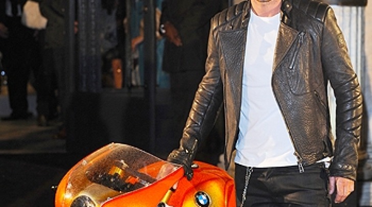 L’ex calciatore ha posato in abiti della marca (giacca di pelle nera, pantaloni e stivaletti) al fianco di una moto BMW arancione, circondato da fan urlanti a cui ha regalato autografi e foto ricordo.