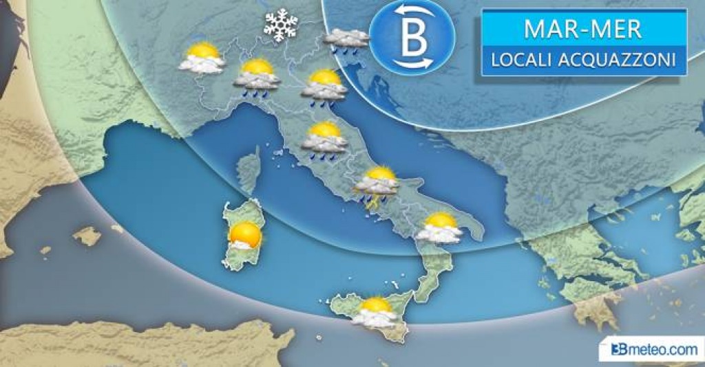 L'area depressionaria che all'inizio della settimana si colloca proprio sul Mediterraneo centrale e l'Italia si sposterà lentamente verso i Balcani nei prossimi giorni. Sarà ancora in grado di condizionare il tempo sulle nostre regioni nella prima parte della settimana, nonostante il suo spostamento verso levante, a causa dell'afflusso di correnti occidentali che manterranno una certa variabilità sulle regioni più esposte, in primis quelle tirreniche. Giorno dopo giorno aumenteranno comunque gli spazi soleggiati, ma saranno intervallati da annuvolamenti che culmineranno nel pomeriggio in prossimità dei rilievi, specie appenninici, con qualche pioggia o temporale in attenuazione nelle ore serali.