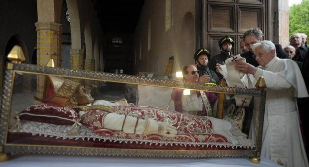Affinità fissate nella storia dallo stesso Benedetto XVI, visitando il 28 aprile del 2009 L’Aquila e la basilica di Collemaggio “ferite” dal terremoto del 6 aprile precedente, quando ricoprì con il proprio pallio (simbolo del Buon Pastore) l’urna del Santo Eremita-
