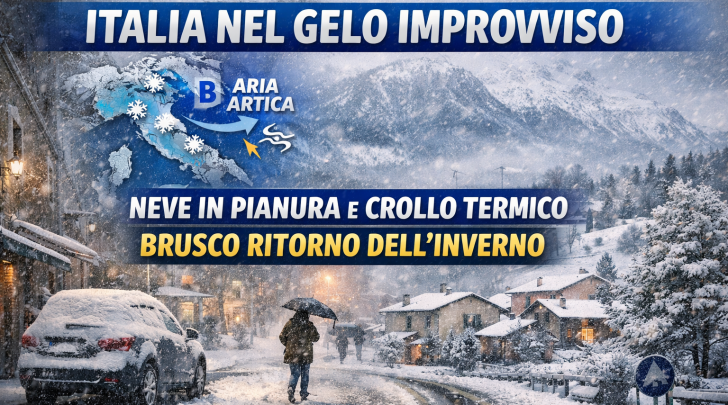 Un’improvvisa ondata di aria artica è pronta a riportare condizioni pienamente invernali sull’Italia, con un deciso peggioramento atteso da mercoledì sera. Le previsioni indicano un ritorno della neve fino a quote molto basse, localmente anche in pianura, accompagnata da venti intensi e un marcato calo delle temperature.