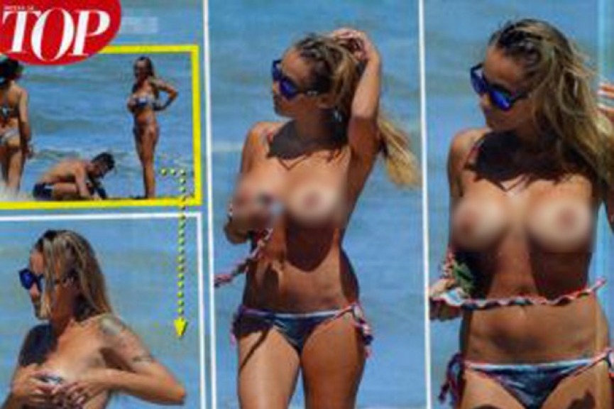 Un topless mostrato in assenza del neo fidanzato Martin Evans, ex di Nina Moric ed assente anche la piccola Ginevra, la figlia avuta dalla sua relazione con Salvatore Angelucci ex tronista di Uomini e Donne.