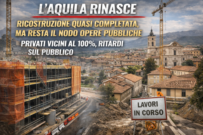 A diciassette anni dal devastante Terremoto dell'Aquila del 2009, il processo di ricostruzione nel capoluogo abruzzese presenta luci e ombre. Secondo gli ultimi dati, il comparto privato ha raggiunto il 96% degli interventi completati o in fase avanzata, mentre la ricostruzione pubblica si ferma intorno al 60%, evidenziando ancora ritardi significativi.