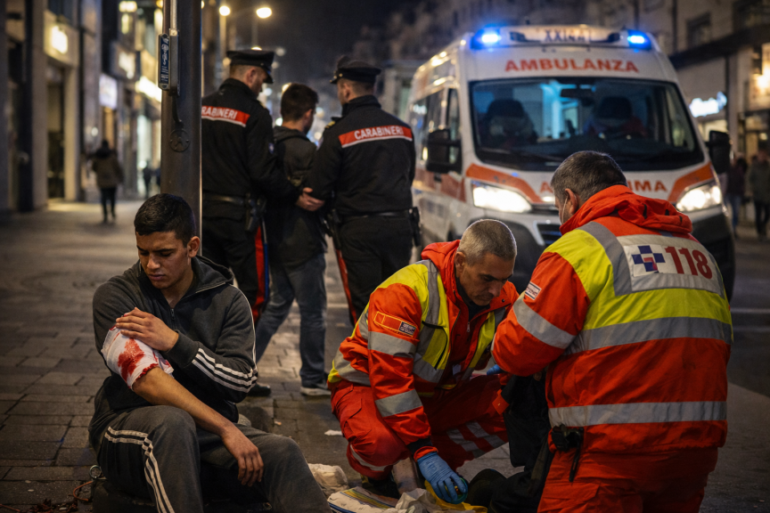 A rimanere ferito è stato un 22enne di origine egiziana, colpito al braccio e alla spalla al termine di una rissa scoppiata, secondo le prime ricostruzioni, per motivi banali. Sul posto sono intervenuti in pochi minuti i carabinieri del Nucleo Radiomobile e del Nucleo Investigativo del Reparto Operativo, insieme ai sanitari del 118, che hanno prestato le prime cure al giovane.