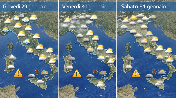 Situazione diversa al Sud, dove il passaggio di un impulso instabile con traiettoria ovest-est, associato a un vortice in transito sul medio-basso Tirreno, determinerà piogge e rovesci fin dalle prime ore del giorno. I fenomeni risulteranno più insistenti sul versante tirrenico, con graduale attenuazione prima sulla Sicilia e successivamente sulle regioni peninsulari. Da segnalare una ventilazione molto sostenuta da ovest-nordovest, con raffiche fino a 80-100 km/h e mareggiate su Sicilia settentrionale, Calabria e Sardegna occidentale.
