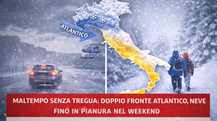 Una fase di maltempo a più riprese è pronta a interessare l’Italia tra venerdì e il weekend, con nevicate a bassa quota e localmente fino in pianura, soprattutto al Centro-Nord. Dopo l’uscita di scena del ciclone Harry, una nuova perturbazione atlantica sta già avanzando da ovest e raggiungerà la Sardegna a partire dal settore occidentale, aprendo una sequenza di peggioramenti ravvicinati.