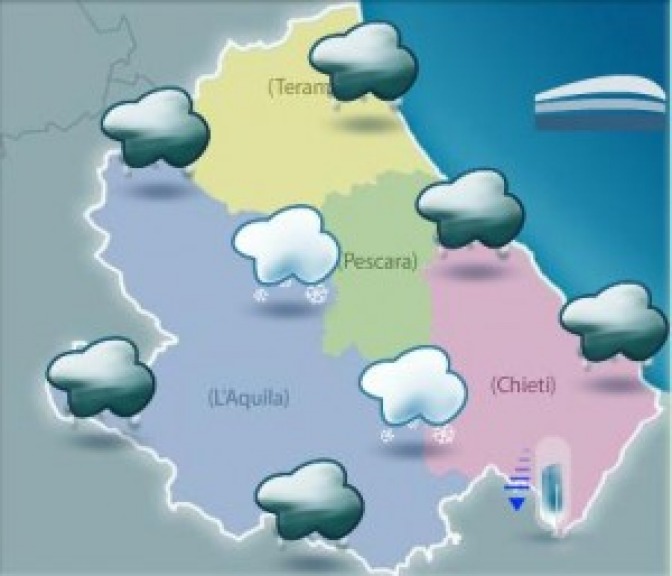 Sulla nostra Regione si prevedono condizioni generali di cielo da nuvoloso a coperto con possibilità di precipitazioni, nevose intorno ai 600-800 metri. Nel corso della giornata è prevista una graduale intensificazione della nuvolosità e delle precipitazioni soprattutto sul settore orientale della nostra Regione, in particolar modo nel teramano. Possibilità di temporali. Anche la giornata di domani sarà caratterizzata da tempo piuttosto freddo ed instabile con rovesci diffusi sul settore orientale e neve in calo fino a bassa quota, anche se la tendenza è verso un graduale miglioramento nel corso del tardo pomeriggio-sera.