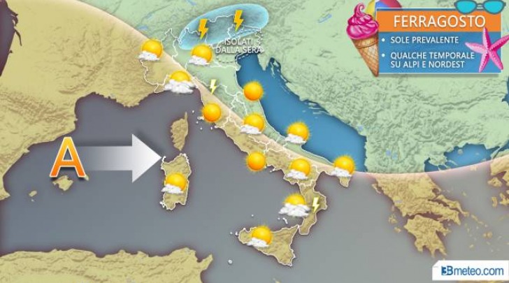 Sarà un Ferragosto con sole prevalente su gran parte d'Italia grazie all'anticiclone delle Azzorre.