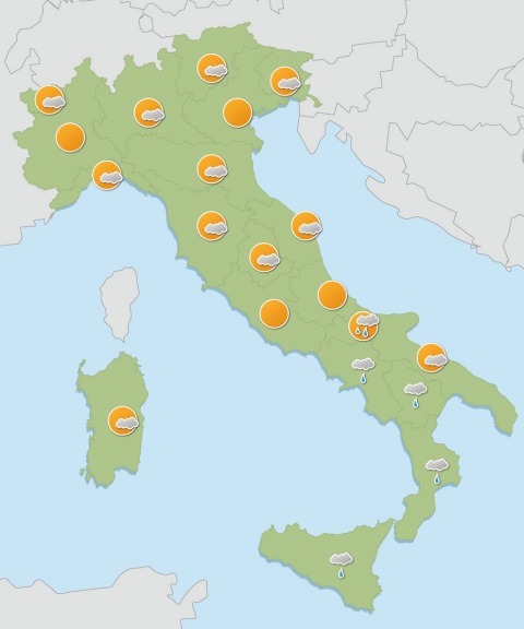 NORD - cielo in prevalenza sereno o poco nuvoloso su tutte le regioni ad eccezione di annuvolamenti consistenti sulle Alpi che, nelle ore pomeridiane, daranno luogo a locali, deboli rovesci o temporali. Tali fenomeni sono comunque destinati ad attenuarsi verso sera.