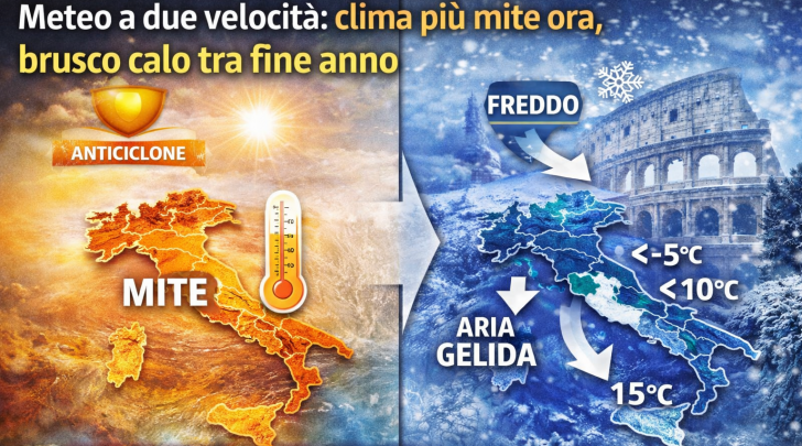 Questo quadro relativamente mite sarà però di breve durata. Tra la fine del 2025 e l’inizio del 2026, l’anticiclone inizierà a cedere sotto la spinta di correnti fredde di origine artica. Il primo calo termico interesserà le quote elevate, per poi estendersi rapidamente anche ai livelli più bassi, determinando una perdita di diversi gradi nelle temperature massime.