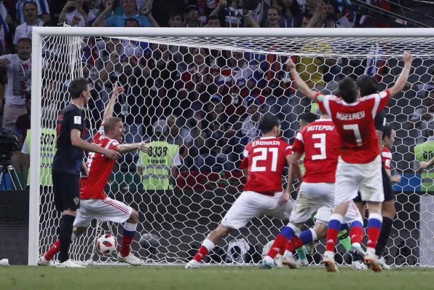Ma non sono bastati 120' per decidere l'ultima delle quattro semifinaliste, comunque tutte europee. Nello stadio di Sochi, tra Russia e Croazia il primo tempo si gioca su ritmi altissimi, senza esclusione di colpi: parte a tutta la Russia, che però fatica a rendersi pericolosa, alla lunga la Croazia prende in mano il comando delle operazioni, con i due genietti di centrocampo Modric e Rakitic. I padroni di casa, un minuto dopo la mezz'ora di gioco, trovano pero' il gol grazie al bomber Cheryshev, che salta proprio Modric, si porta il pallone sul sinistro e, da circa 22 metri, batte Subasic con un gran tiro che manda il pallone a insaccarsi sotto la traversa. Lo stadio di Sochi è tutto per lui. Ma l'entusiasmo nasce e muore con l'azione dell'1-0, perché passano solo 8' e i croati confezionano il pari: Mandzukic penetra dalla sinistra, mette al centro per l'accorrente Kramaric che, di testa, gira alle spalle di Akinfeev.