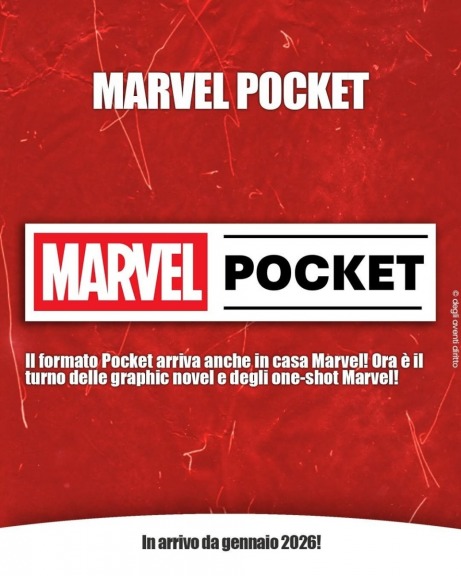Per l’universo Marvel spicca la nascita della collana Marvel Pocket, una linea economica in formato tascabile attesa da gennaio 2026 con due volumi al mese. Il progetto mira a raccogliere saghe di culto e storie recenti in un pacchetto accessibile.