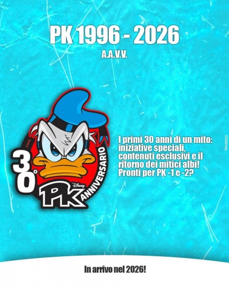 Sul fronte Disney, Panini ha annunciato un ritorno di Paperone con Paperone in Atlantide, storia originale in quattro puntate, a partire da gennaio nella rivista Topolino. Verranno inoltre celebrati i 30 anni di PK con una storia firmata da Francesco Artibani e Lorenzo Pastrovicchio, oltre agli albi PK -1 e PK -2 che sveleranno gli antefatti della saga.