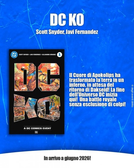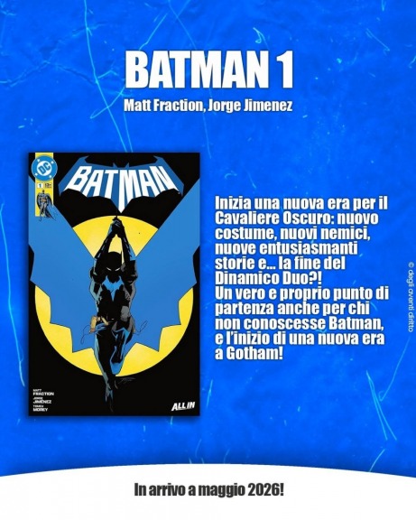 Tra le novità per l’Universo DC, emerge l’atteso ritorno di Batman con un nuovo #1 firmato da Matt Fraction e Jorge Jiménez in uscita a maggio 2026, corredata da edizioni variant. Inoltre, è stato annunciato l’evento crossover DC K.O., previsto tra maggio e giugno, e una serie di testate sotto il marchio Vertigo, raccolte in una rivista antologica intitolata DC Vertigo Presenta.