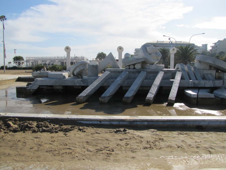 “Due anni e mezzo fa – ha ricordato l’assessore Del Trecco – la fontana ‘La Nave’ di Cascella, uno dei gioielli del patrimonio artistico internazionale che Pescara ha avuto la fortuna e il privilegio di poter ospitare e di posizionare forse nel punto più centrale della città, era ridotta a un ricettacolo di rifiuti, con ruggine e uno strato di nero, provocato dall’acqua, che aveva ricoperto e adombrato completamente la pietra bianco del monumento. Per non parlare della seduta di marmo che circonda la struttura, interamente deturpata da scritte e immagini eseguite con i pennarelli o con le vernici spray, e infine la vasca interna, con le luci spente, rotte, e piena di rifiuti, dalle classiche monetine che qualche visitatore comunque vi lanciava, sino a bottigliette di plastica, carta e ogni genere di pattume, una condizione di degrado che rappresentava un’offesa per la città, per l’artista e per il mondo della cultura. Subito ci siamo attivati e con un intervento di pulizia radicale abbiamo riportato all’antico splendore la struttura, per poi innescare un meccanismo automatico di manutenzione ordinaria che parte non appena ne verifichiamo la necessità. Stamane le squadre della Attiva sono tornate in azione: alle 8 è iniziato lo svuotamento della vasca dall’acqua, quindi gli operai hanno cominciato a rimuovere tutta la sabbia che, inevitabilmente, il vento ha trasportato, una quantità impressionante momentaneamente depositata lungo il bordo della fontana. Quindi le unità della Attiva hanno iniziato il lavaggio manuale della fontana, per poi passare, nel pomeriggio, all’impiego dell’idropulitrice per restituire luce al marmo, e quindi alla bonifica della seduta, nei punti in cui abbiamo trovato nuove scritte – ha aggiunto l’assessore Del Trecco –. Lo svuotamento della vasca ci permette tra l’altro di effettuare la manutenzione periodica delle parti elettriche e dei fari che possono registrare qualche corto circuito. Entro domani sera contiamo di aver riattivato la fontana, mentre è bene ricordare alla città l’entrata in vigore dell’ordinanza emessa dal sindaco Albore Mascia a tutela dei monumenti cittadini, a partire da quelli dedicati ai Caduti, ma non solo: d’ora in avanti chi verrà sorpreso a imbrattare il nostro patrimonio artistico, culturale e storico verrà denunciato penalmente”.
