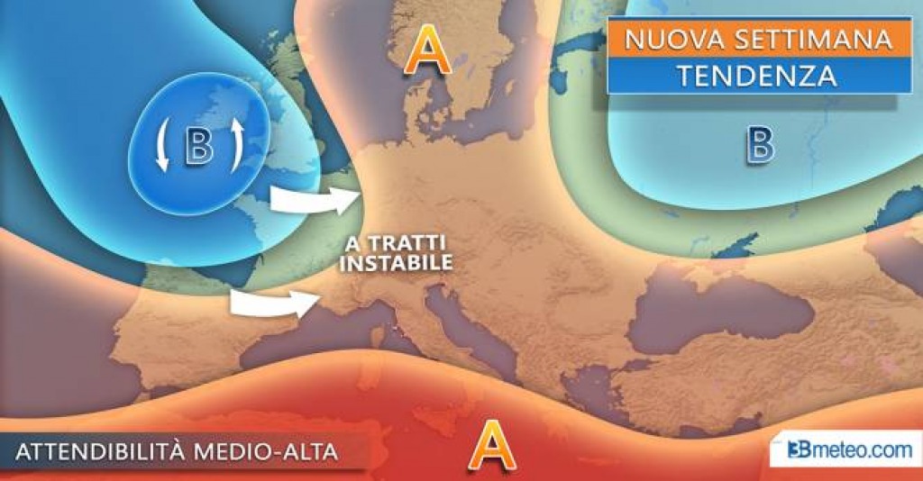 L'alta pressione si sta ormai posizionando lungo i paralleli distendendosi sull'Europa meridionale e favorendo il passaggio di impulsi atlantici in transito da ovest ad est lungo il suo perimetro superiore. Uno di questi transiterà lunedì impegnando il Centro-Nord e le regioni del basso Tirreno. Sarà seguito da schiarite anche ampie ma nel giro di altre 24 ore toccherà all'ennesimo impulso atlantico raggiungere lo Stivale, con coinvolgimento ancora una volta delle regioni settentrionali e di quelle tirreniche.