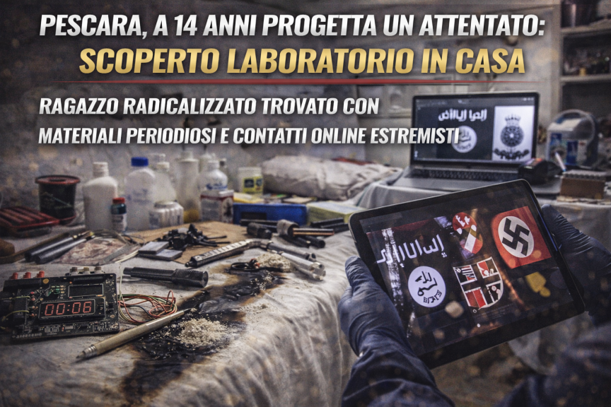 Un nuovo e inquietante episodio legato al terrorismo giovanile emerge a Pescara, dove un ragazzo di appena 14 anni è finito al centro di un’indagine per aver progettato un attentato contro un edificio pubblico. Nella sua abitazione, nel quartiere di Portanuova, gli investigatori hanno scoperto un vero e proprio laboratorio artigianale per la produzione di esplosivi.