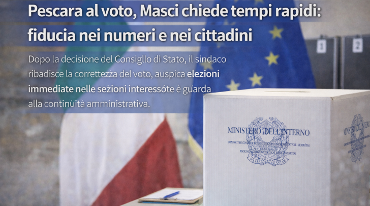 Il sindaco di Pescara, Carlo Masci, commenta con amarezza la decisione del Consiglio di Stato che ha accolto solo in parte il ricorso, disponendo il ritorno alle urne in 23 sezioni, compresa una ospedaliera, su un totale di 170. Una pronuncia che, sottolinea il primo cittadino, ha però respinto integralmente l’appello presentato dal candidato del centrosinistra Carlo Costantini, smentendo l’ipotesi di un nuovo voto esteso a tutta la città.