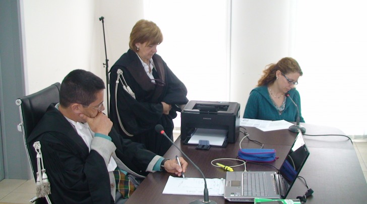 L'Aquila - Affollatissima la piccola aula del Tribunale provvisorio a Bazzano (L'Aquila) in attesa...
