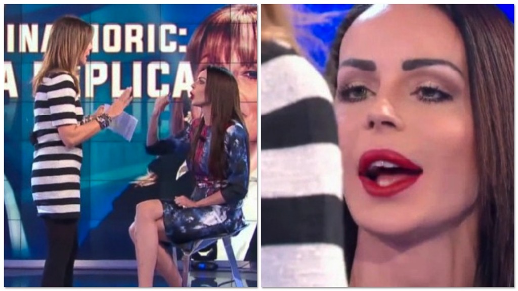 "Fermati. Nessuno ha messo al rogo una madre. Noi non ci siamo messi in mezzo, è diverso. Nel momento in cui muovi delle accuse e dici che ci siamo messi in mezzo, io ti chiedo quando è successo. Nina calmati! Io ti dico il perché e con estrema calma. Ognuno ha la propria etica e la propria morale nel fare i programmi. Io non voglio che si parli di un minore in un studio televisivo. Non è questa la sede. Fammi concludere! Come faccio il programma, lo decido io visto che sono la conduttrice. Detto ciò, nel nostro programma, che è dedicato alle famiglie, se vuoi replicare alle cose dette, puoi replicare. Se tu sei venuta qui per dire che tuo figlio non ha mai avuto un padre e cose simili, io non voglio, per quella che è la mia etica morale, che non si parli di un minore in un programma tv. Nessuno ti ha messo sul rogo. Rimandiamo tutta l'intervista integrale. Ci metto un secondo"