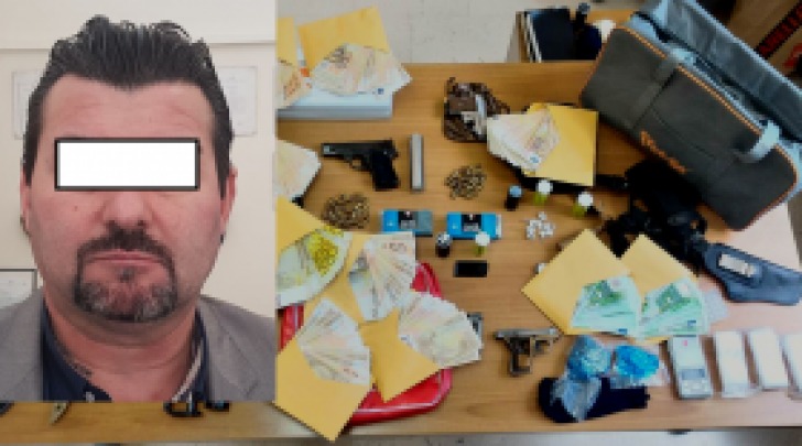 Hanno proceduto, quindi, dapprima a perquisizione domiciliare presso il suo appartamento dove, dopo attenta ricerca, hanno trovato una bustina in cellophane trasparente contenente residui di polvere di cocaina, un contenitore di proiettili vuoto e tre mazzette di banconote in tagli da 50, 100 e 200 euro confezionate sottovuoto per un totale di 50.000 euro.