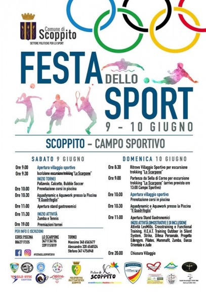 Per due giorni il comune di Scoppito (Aq) diventerà capoluogo di sport dell'interland aquilano con la prima festa dello sport organizzata dall'amministrazione comunale con l'attiva collaborazione delle migliori realtà sportive del territorio.