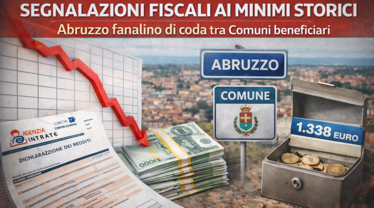 Collaborazione al recupero dell’evasione fiscale: in Abruzzo solo un Comune ottiene risorse nel 2024, proventi in calo e peso marginale nel quadro nazionale