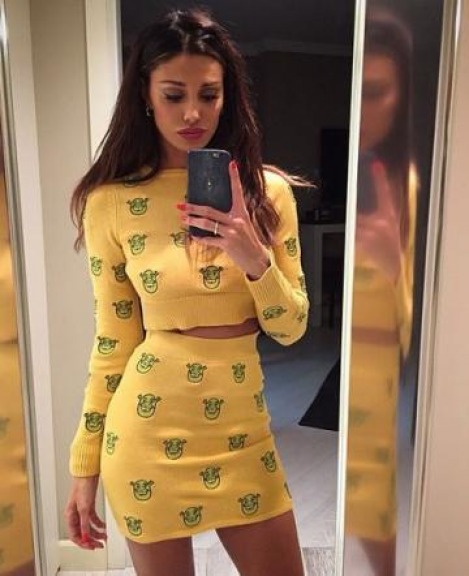 Belen Rodriguez in questa versione è in giallo con una magliettina corta e minigonna a vita alta, un abbigliamento, certo, aggressivo, ma che può comunque essere uno spunto anche per le "comuni mortali" .