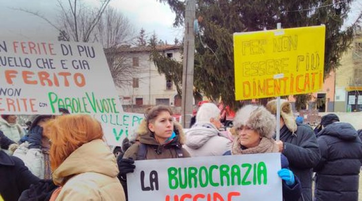 "Siamo qui per manifestare la nostra amarezza - dice Peppe Mariani, imprenditore marchigiano di Roccafluvione, tra gli organizzatori della manifestazione - per come è stata gestita tutta questa emergenza. S
