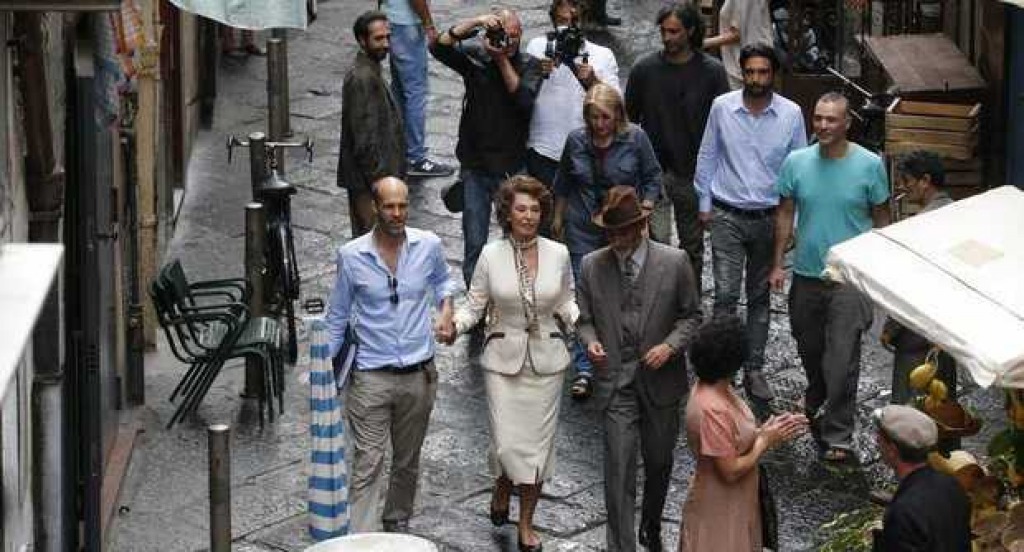 Dopo le prime scene girate venerdi' e sabato, oggi Sofia Loren e' tornata nei vicoli di Napoli e subito e' scattato, caldo e affettuoso, l'abbraccio della gente che abita i quartieri.