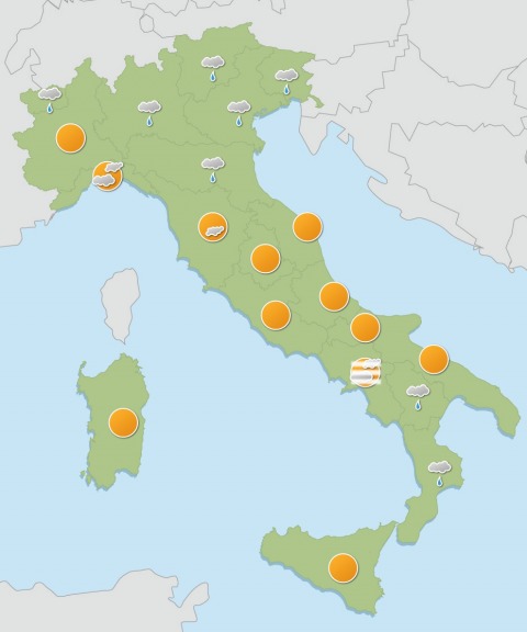 Tempo previsto sull'italia per domani giovedi' 22/06/17
