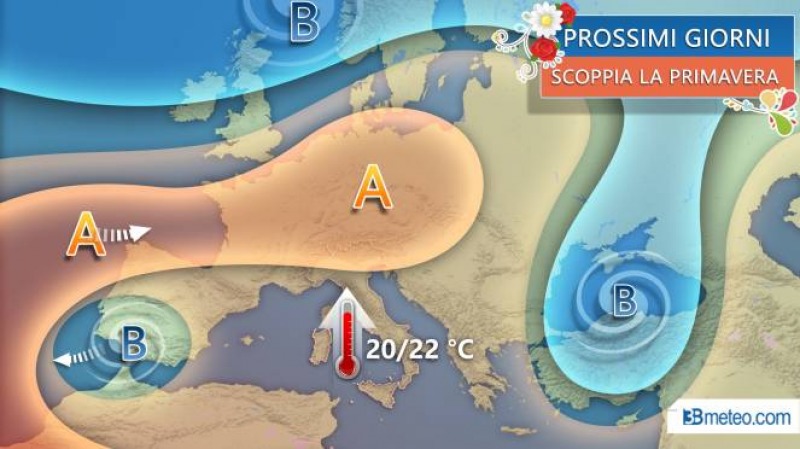 Non si tratta quindi di un rinforzo tale da permettere già un lunedì stabile e soleggiato su tutte le nostre regioni, anche se su molte di queste la settimana si apre con il sole. Da martedì invece, ma soprattutto nei giorni immediatamente successivi, l'anticiclone si rinforzerà ulteriormente e si estenderà a tutta l'Europa centrale e meridionale, favorendo tempo stabile e soleggiato su praticamente tutte le regioni e le temperature aumenteranno costantemente portandosi su valori pienamente primaverili. A ridosso del fine settimana però qualcosa potrebbe iniziare a cambiare per infiltrazioni di correnti più fredde dal Nord Europa verso il Mediterraneo.
