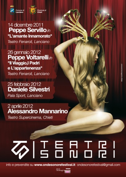 La nuova rassegna Teatri Sonori nasce dall'idea di esplorare il rapporto tra la musica e il teatro, approccio cantautorale e tradizione performativa, per fondere e, perchè no, confondere i generi, il pubblico e indagare il confine tra le arti. Per questo la rassegna mette insieme quattro cantautori, che si connotano proprio per i loro percorsi eclettici: Peppe Servillo, nome che non ha bisogno di presentazioni come voce degli Avion Travel; Peppe Voltarelli, autore che proviene dall'importante esperienza de Il Parto delle Nuvole Pesanti e dalla tradizione della cultura del Sud; Daniele Silvestri, uno dei più influenti cantautori degli ultimi anni che ha saputo cantare le nuove generazioni che andrà in scena con Pino Marino e Alessandro Mannarino, artista che colpisce per l'originalità dei suoi lavori e per fondere tradizione popolare e nuovi linguaggi sonori.