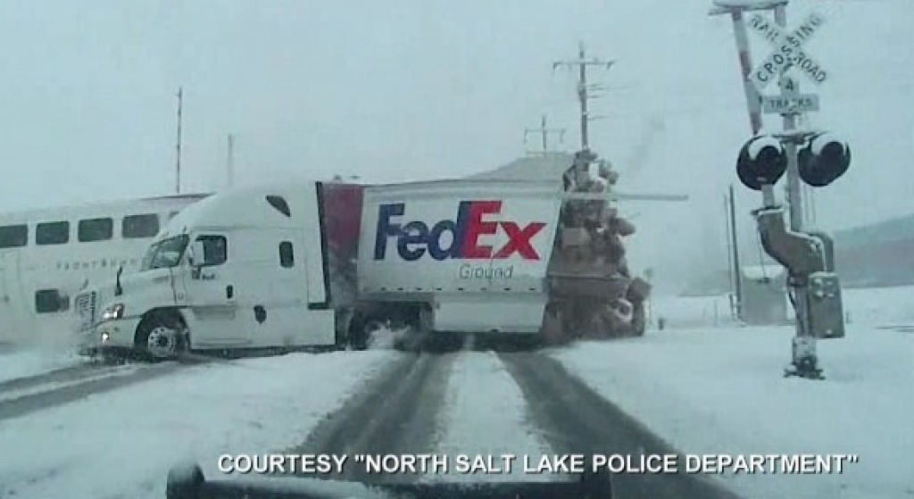La videocamera ha ripreso il momento esatto in cui un treno FrontRunner dello Utah, si è schiantato contro un camion FedEx Sabato mattina.