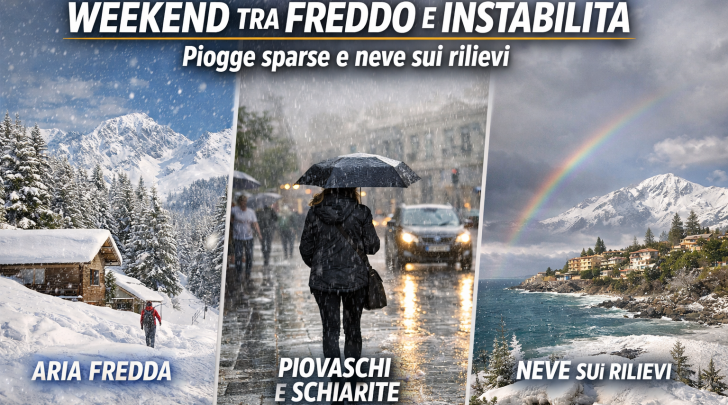 Il fine settimana sarà ancora influenzato da correnti di aria fredda continentale, che continueranno a interessare l’Italia mantenendo condizioni di variabilità diffusa. Il quadro generale sarà caratterizzato da un’alternanza tra ampie schiarite e momenti di instabilità, con precipitazioni localizzate e nevicate sui rilievi.
