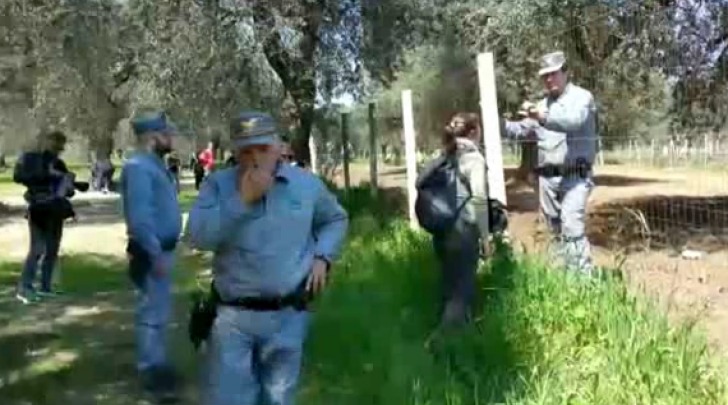 Due ambientalisti sono saliti su un albero per bloccare l'abbattimento degli ultimi tre dei sette ulivi di cui è prevista oggi l'eradicazione ad Oria, nel brindisino. Uno di loro, all'improvviso, è sceso dall'albero e, con un forcone, ha tentato di togliere le ramaglie dal fuoco. Subito bloccato dai carabinieri, è risalito sull'albero. Sul posto vi sono una settantina di ambientalisti che protestano animatamente.